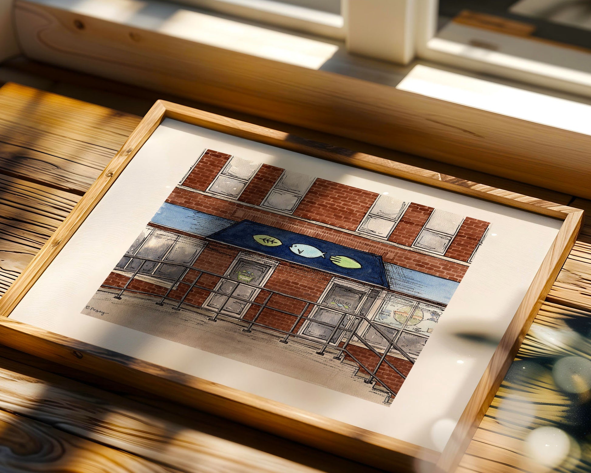 - Watercolor with pen and ink on cold-pressed watercolor paper