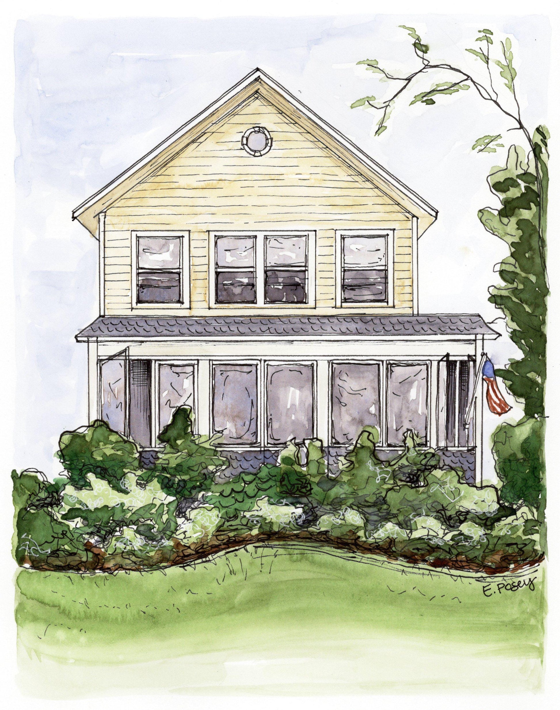 Custom watercolor sketches on archival 140 lb watercolor paper - perfect for a housewarming or realtor gift! Once the order is placed, please email 1-3 photos to me (hello@madebyemilyposey.com).