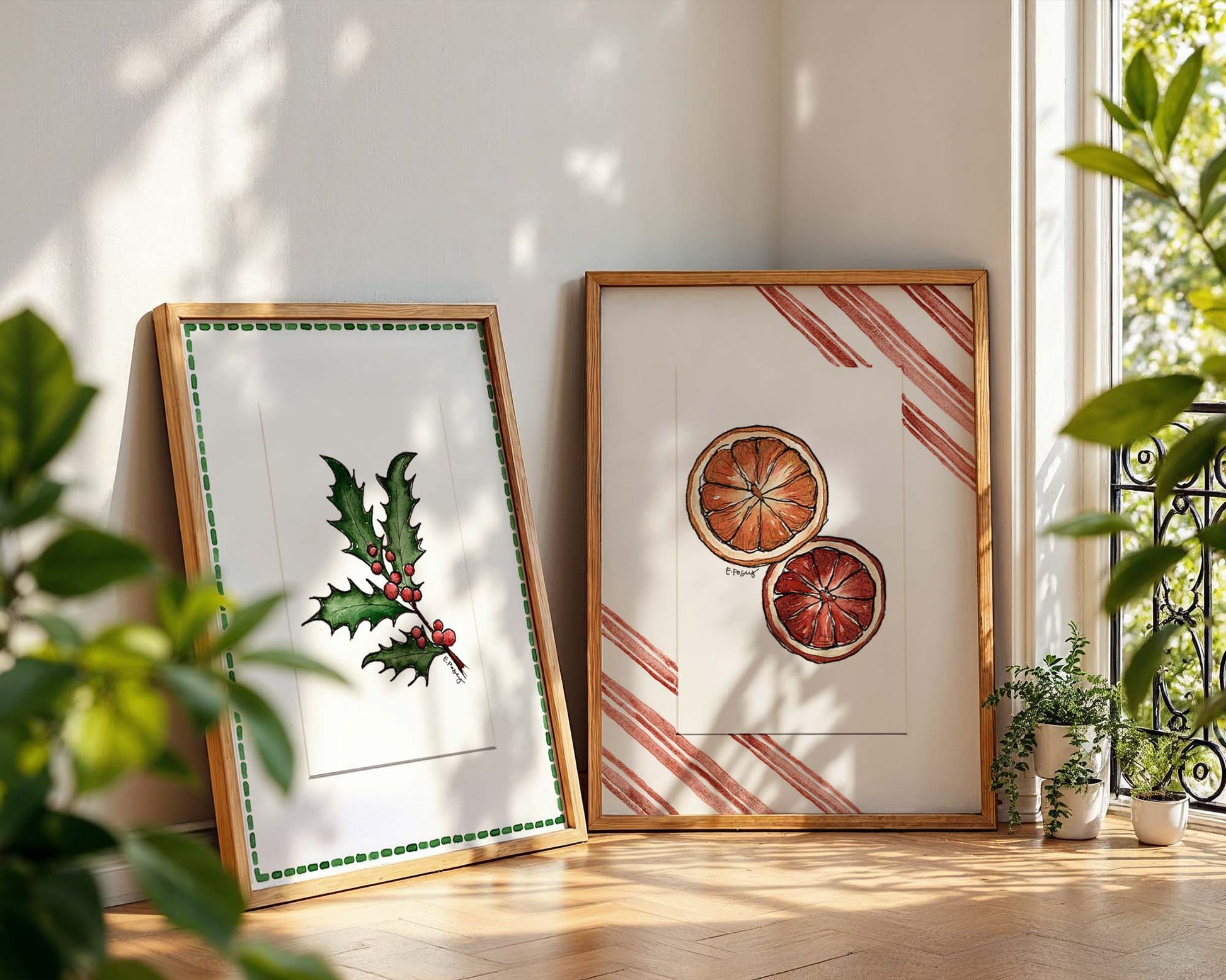 Deck your halls with a cozy original watercolor painting. Includes one 5x7in painting with a painted 8x10in mat of your choice.